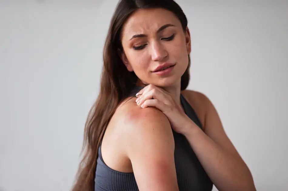 Jeune femme avec rougeurs sur le corps dues à des piqures de punaises de lit
